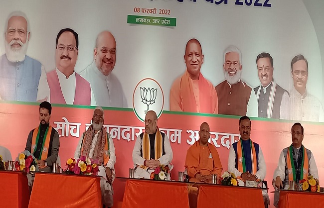 लखनऊ (हि.स.)। भारतीय जनता पार्टी ने विधानसभा चुनाव-2022 के लिए लोक कल्याण संकल्प पत्र जारी किया। गृह मंत्री अमित शाह ने मंगलवार को इंदिरा गांधी प्रतिष्ठान में आयोजित कार्यक्रम में मुख्यमंत्री योगी आदित्यनाथ, यूपी चुनाव सह प्रभारी अनुराग ठाकुर, प्रदेश भाजपा अध्यक्ष स्वतंत्र देव सिंह, उपमुख्यमंत्री केशव प्रसाद मौर्य, डॉ. दिनेश शर्मा की मौजूदगी में लोकल पत्र जारी किया।