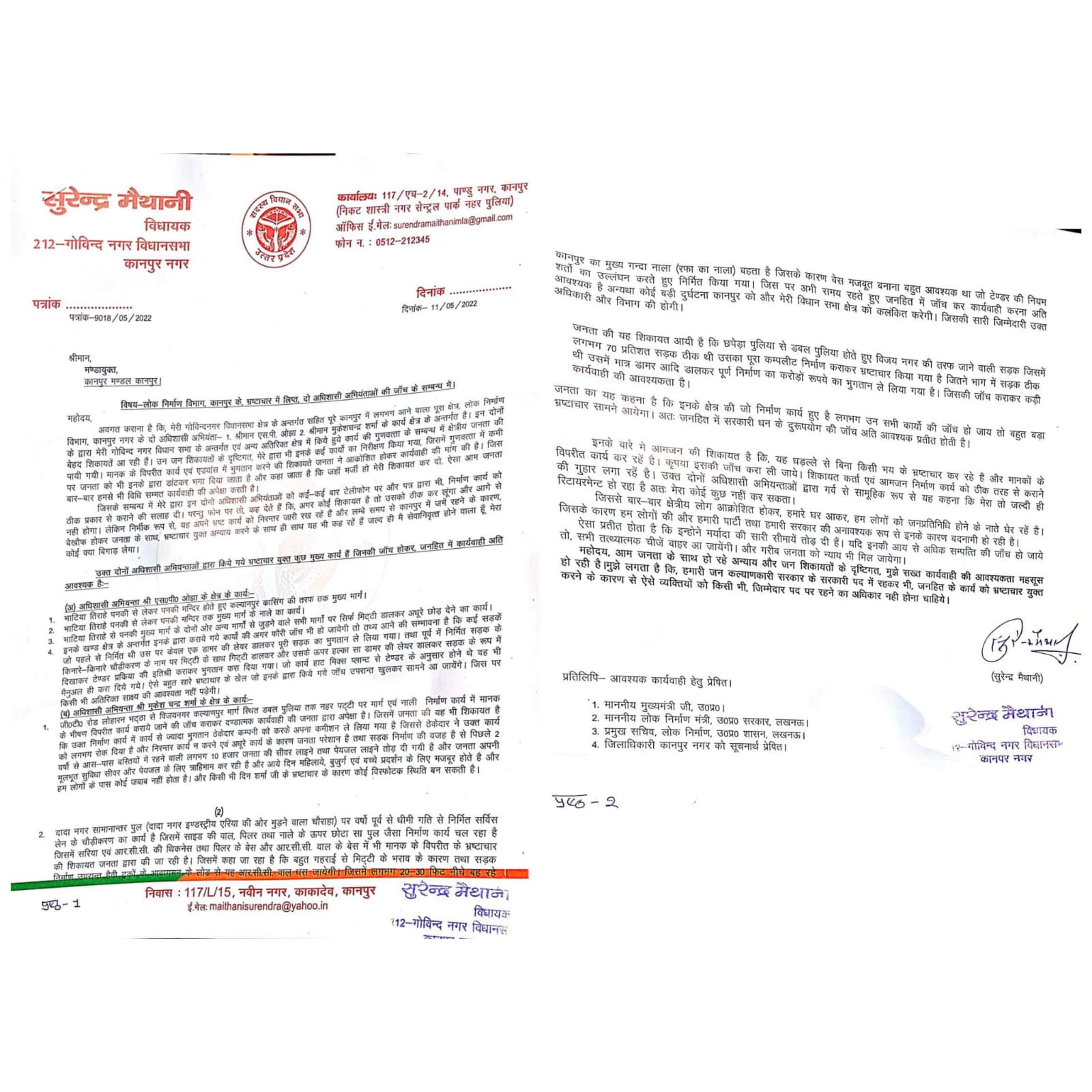 विधायक ने पत्र में लिखा कि लोक निर्माण विभाग कानपुर नगर के अधिशासी अभियंता एस.पी. ओझा और मुकेश चन्द्र शर्मा की शिकायतें मेरे पास बराबर आ रही हैं। जनता की शिकायतों को लेकर कई बार दोनों अभियंताओं से फोन पर वार्ता भी की गई, लेकिन हर बार कुछ न कुछ बहाना बनाया गया और भ्रष्टाचार में बराबर लिप्त हैं। विधायक ने अपने पत्र में दोनों अभियंताओं द्वारा कराये गये निर्माण कार्यों की सूची भी सौंपी हैं जहां पर भ्रष्टाचार किया गया है। यह भी आरोप लगाया है कि कमीशन के चक्कर में ठेकेदारों को अग्रिम भुगतान कर देते हैं। जिससे ठेकेदार मानक के विपरीत कार्य कर रहे हैं और मैंने खुद निरीक्षण किया जिसमें जनता की शिकायतों को झूठा नहीं करार दिया जा सकता।