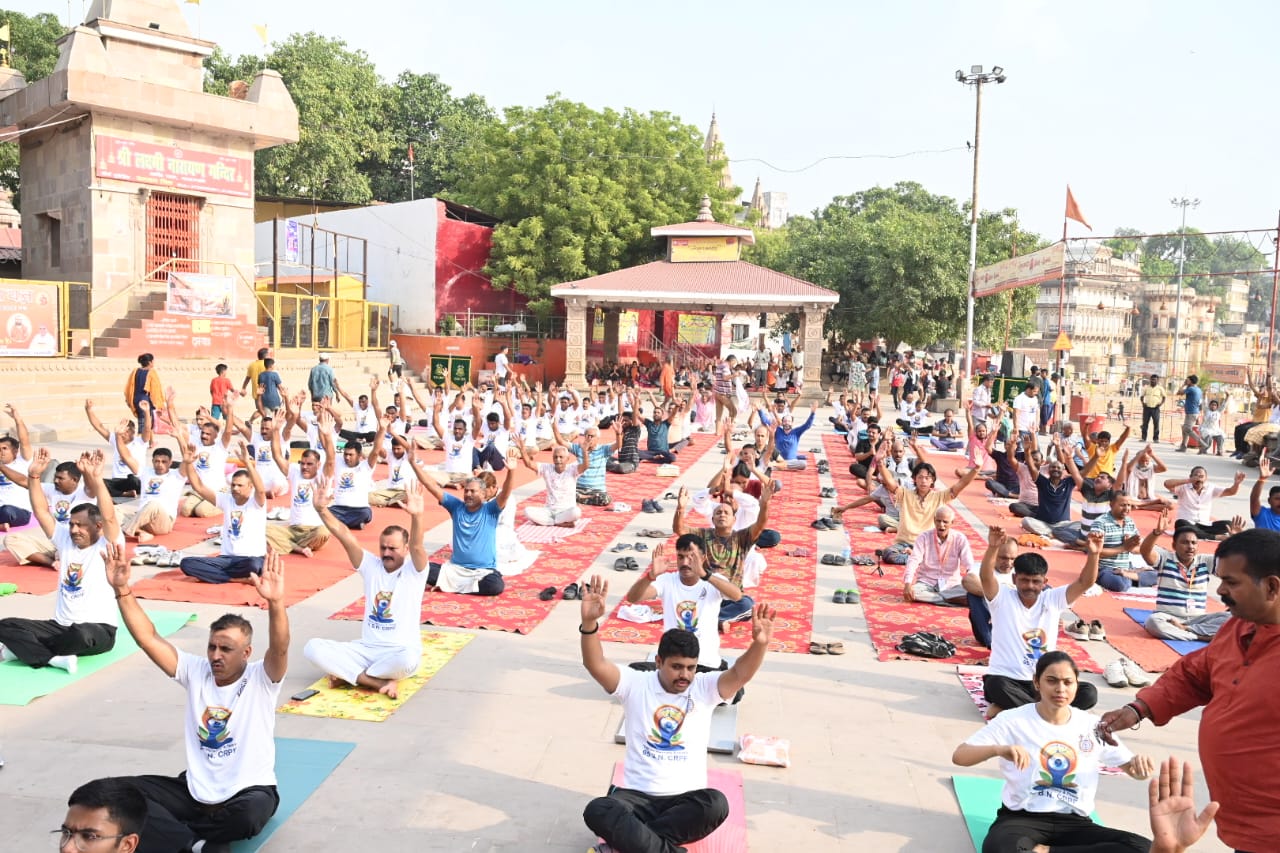 वाराणसी (हि.स.)। विश्व योग दिवस के पहले ही काशी में योग की बयार बहने लगी है। गंगाघाट पर और सार्वजनिक स्थानों पर लग रहे योग शिविर में लोग पूरे उत्साह से भागीदारी करने लगे हैं। शनिवार को 95 बटालियन केंद्रीय रिजर्व पुलिस बल के जवानों और अफसरों के साथ सृजन संस्था के कार्यकर्ताओं ने अस्सीघाट पर योग किया। बटालियन के कमांडेंट अनिल कुमार बृक्ष की अध्यक्षता में एवं अनिल कुमार सिंह (गंगा हरीतिमा अभियान के ब्रांड एंबेसडर यूपी) के सहयोग से योग का कार्यक्रम आयोजित किया गया। शिविर में भाजपा के स्थानीय जिलाध्यक्ष और एमएलसी हंसराज विश्वकर्मा भी बतौर मुख्य अतिथि शामिल हुए।