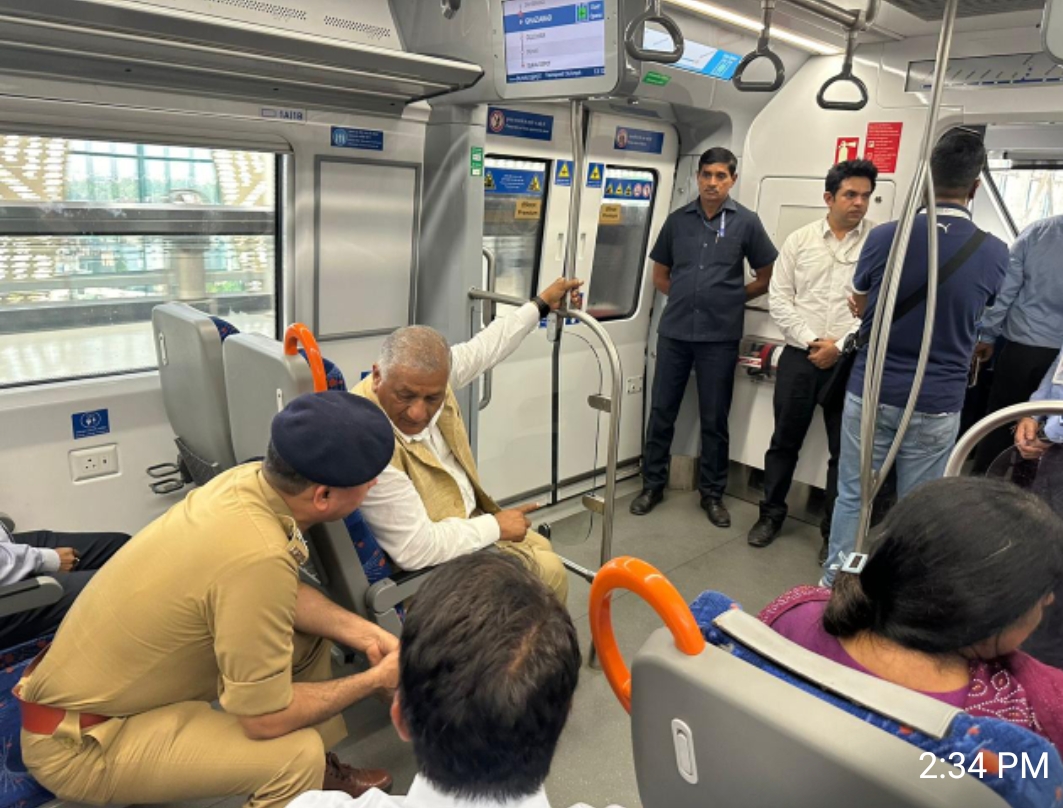 गाजियाबाद(हि.स.)। सांसद एवं केंद्रीय सड़क परिवहन राजमार्ग एवं नगर विमान राज्य मंत्री जनरल डॉ. विजय कुमार सिंह ने भारत की पहली रैपिड रेल परियोजना का निरीक्षण किया। उन्होंने रैपिड रेल में सफर भी किया।