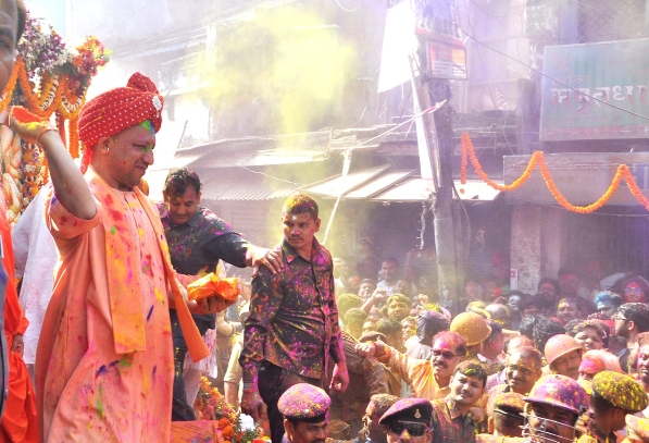 गोरखपुर(हि.स.)। गोरक्षनगरी का रंगोत्सव वृंदावन, बरसाना की होली से कम विशिष्ट नहीं है। दशकों से होलिका दहन व होलिकोत्सव शोभायात्रा में गोरक्षपीठ को सहभागिता ने यहां के रंगपर्व को समूचे पूर्वी उत्तर प्रदेश के आकर्षण का केंद्र बना रखा है। मुख्यमंत्री बनने के बाद व्यस्तताओं के बावजूद बतौर गोरक्षपीठाधीश्वर योगी आदित्यनाथ गोरखपुर की दो महत्वपूर्ण शोभायात्राओं में सम्मिलित होते हैं। इन शोभायात्राओं में सामाजिक समरसता और समतामूलक समाज का प्रतिबिंब दिखता है।