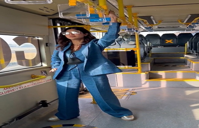 अभिनेत्री शिल्पा शेट्टी सोशल मीडिया पर काफी सक्रिय रहती हैं और अक्सर अपने फिटनेस वीडियो फैंस के साथ साझा करती रहती हैं। सोमवार को भी उन्होंने अपना एक वीडियो शेयर किया है, जिसमें वह ब्लू कलर के सेमी फॉर्मल ड्रेस में नजर आ रही हैं। इसके साथ ही उन्होंने अपने बालों को खुला रखा है और आँखों पर चश्मा लगाया हुआ है।इस वीडियो में शिल्पा शेट्टी चलती हुई एयरपोर्ट शटल बस में पुश अप्स, लंजेस और पुल अप्स करती नजर आ रही हैं। आखिरी में वह बस के हैंडल को भी साफ करती हैं, जिसे पकड़कर उन्होंने एक्सरसाइज की थी।