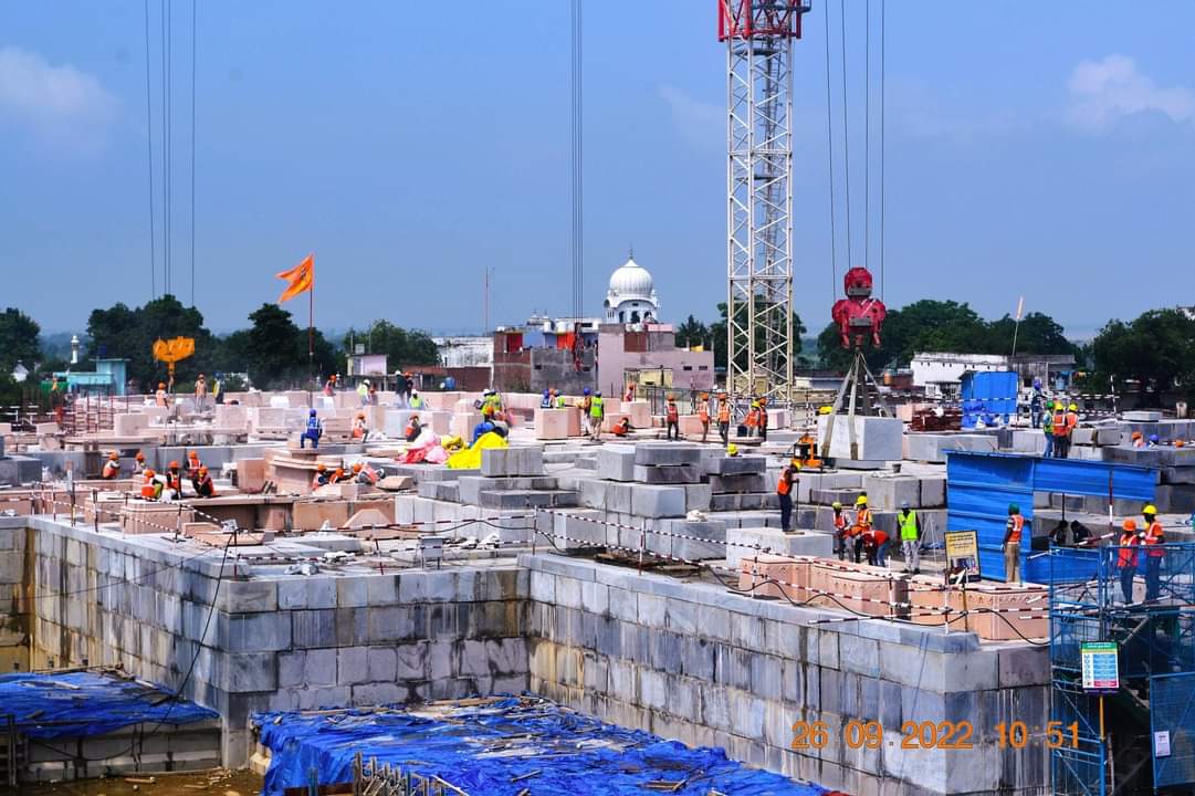 अयोध्या (हि.स.)। श्रीराम जन्मभूमि तीर्थ ट्रस्ट की ओर से सुर साम्राज्ञी लता मंगेशकर चौक के लोकार्पण समारोह के अवसर पर बुधवार को श्रीराम मंदिर निर्माण की ताजा तस्वीरें सोशल मीडिया जारी की । निर्माण कार्य और भव्यता की सभी तस्वीरें ट्रस्ट के आधिकारिक ट्विटर हैंडल पर दिखाई दे रही हैं। मन्दिर निर्माण की प्रगति वाले तस्वीरों में मंदिर निर्माण का कार्य प्रगति पर दिखाई दे रहा है, जिसमें श्रमिक तन्मयता के साथ कार्य करते हुए दिखाई पड़ रहे हैं।