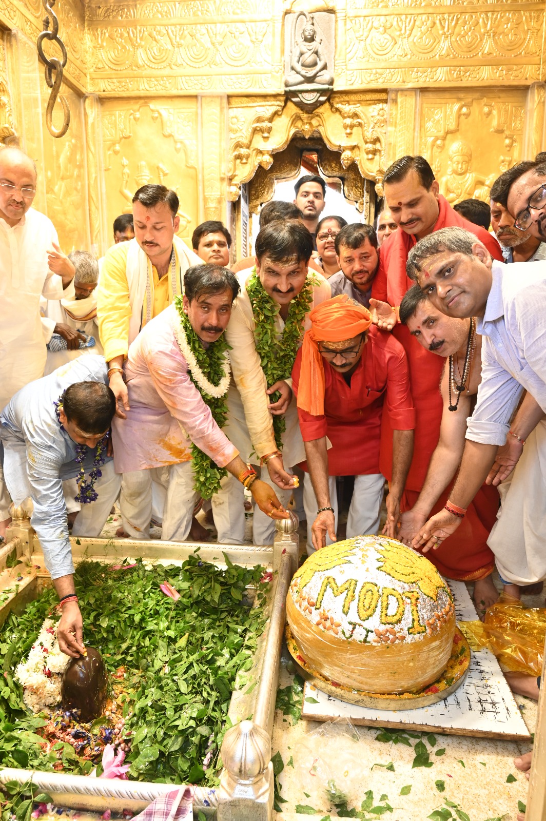 वाराणसी (हि.स.)। देश के प्रधानमंत्री और वाराणसी संसदीय क्षेत्र के सांसद नरेंद्र मोदी का जन्मदिन रविवार को श्री काशी विश्वनाथ धाम में भव्य रूप से मनाया गया। पूर्वाह्न 09 बजे से आयोजित हुए कार्यक्रम में सबसे पहले 73 ब्राह्मणों ने वैदिक मंत्रों से पूजन की शुरुआत की। 73 कलश से बाबा के पावन ज्योर्तिलिंग का जलाभिषेक कर 73 कमल के पुष्प बाबा को अर्पित किया गया। पूजन के पश्चात 73 किलो के बने एक लड्डू का प्रसाद चढ़ाया गया। दरबार में 100008 बेलपत्र चढ़ाकर प्रधानमंत्री मोदी के दीर्घायु होने की कामना की गई।