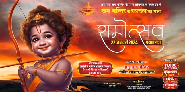 प्रयागराज (हि.स.)। अयोध्या में 22 जनवरी को श्री राम जन्मभूमि पर भगवान श्रीराम के प्राण प्रतिष्ठा की तर्ज पर प्रयागराज में भी राम उत्सव धूमधाम से मनाया जाएगा। इसके लिए विशाल तैयारी कर ली गई है।