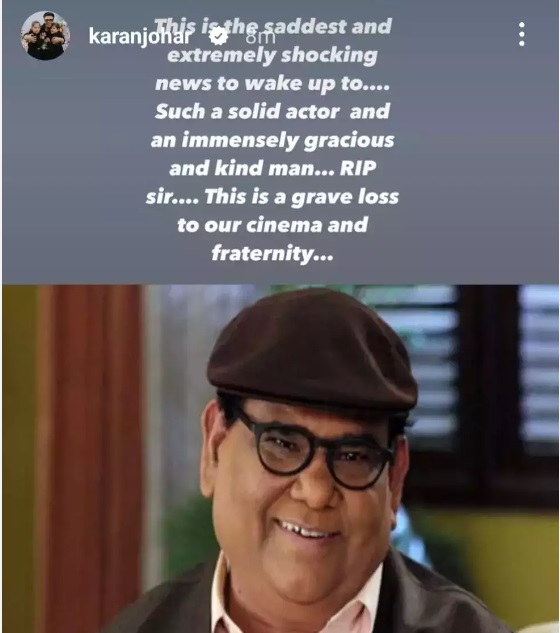 करण जौहर ने लिखा, “जागने के बाद यह सबसे दुखद और बेहद चौंकाने वाली खबर है… इतना मजबूत अभिनेता और बेहद दयालु व्यक्ति…। आरआईपी सर … यह हमारे सिनेमा के लिए एक गंभीर क्षति है ”