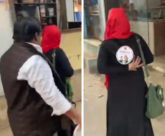 सोशल मीडिया पर जो यह वीडियो वायरल हो रहा है, जो लखनऊ के पश्चिम क्षेत्र का बताया जा रहा है। जानकारी के अनुसार समाजवादी पार्टी के उम्मीदवार अरमान खान के समर्थक इलाके में प्रचार-प्रसार कर रहे थे। इसमें कुछ मुस्लिम महिलाएं भी शामिल थीं। प्रचार के दौरान एक कार्यकर्ता ने आगे चल रही मुस्लिम महिला साथी के बुर्के पर स्टीकर लगा दिया। इस कृत्य का वीडियो सोशल मीडिया में तेजी से वायरल हो गया। इस पर उप्र भाजपा सह चुनाव प्रभारी व केंद्रीय मंत्री अनुराग ठाकुर ने ट्वीट कर सपा पर तंज कसा है। उन्होंने अपने ट्वीट में कहा है कि यही है लाल टोपी के काले कारनामे। एक राह चलती महिला के साथ सपा नेता की बदसलूकी देखिए। ‘जहां भरे हों ऐसे मनचले,यूपी क्यों उनके साथ चले ? सोशल मीडिया पर यह वीडियो तेजी से वायरल हो रहा है, जिस पर लोग अपनी टिप्पणी भी दे रहे हैं।