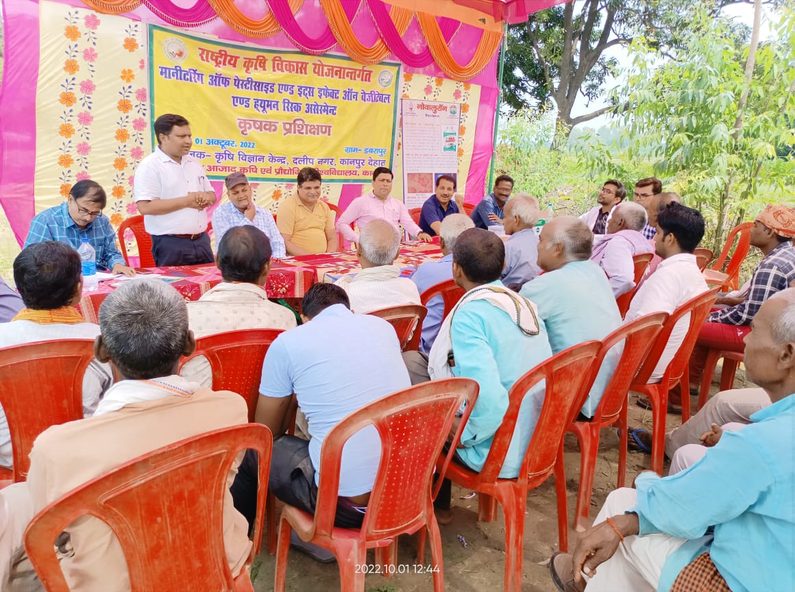 उद्यान वैज्ञानिक डॉ अरुण कुमार सिंह ने सब्जी मटर, मूली, टमाटर, गोभी, बंद गोभी, पत्ता गोभी इत्यादि सब्जियों की वैज्ञानिक विधि के बारे में विस्तार से किसानों को जानकारी दी। डॉ विनोद प्रकाश में सब्जी की खेती के तरीके को बढ़ावा देने की पहल की है। क्योंकि यह पर्यावरण अनुकूल और पारिस्थितिकीय रूप से टिकाऊ होने के अलावा कृषक समुदाय के सामाजिक, आर्थिक विकास के उद्देश्य को पूरा करता है। इस अवसर पर डॉ सुशील कुमार यादव ने कार्यक्रम की विस्तार से रूपरेखा प्रस्तुत की। कार्यक्रम में मेडिकल कॉलेज कानपुर के डॉक्टर एके शर्मा के नेतृत्व में टीम ने किसानों के रक्त नमूना भी लिए। जिससे किसानों के शरीर पर रासायनिक कीटनाशकों के प्रभाव के परिणाम को भी देखा जाएगा। केंद्र के शरद सिंह ने सभी किसानों का पंजीकरण किया। इस अवसर पर प्रगतिशील कृषक हुकुम सिंह, कैलाश बाबू, प्रमोद कुमार, अनिरुद्ध, ज्ञान सिंह, शिवप्रसाद सहित 60 से अधिक किसान उपस्थित रहे।