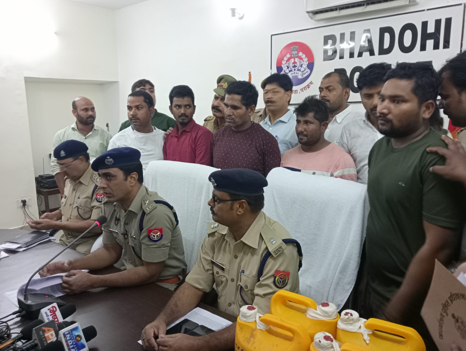 पुलिस अधीक्षक भदोही डॉ. अनिल कुमार के अनुसार जनपद में पुलिस रिकार्ड में पंजीकृत तीन शातिर गिरोह का सरगना अपने साथियों के साथ प्रदेश के सात जनपदों में शराब की दुकानों की कटिंग कर शराब चोरी करते थे। शराब की ढुलाई के लिए चोरी की टवेरा, तीन मोटर साइकिल का उपयोग किया जाता था। पुलिस ने बदमाशों के पास से शटर कटिंग के विभिन्न प्रकार के उपकरण एवं पिस्टल के साथ कारतूस बरामद किया है। सरकारी दुकानों से चोरी गयी 911 अंग्रेजी शराब की विभिन्न ब्राण्ड की बोतलें भी बरामद हुईं हैं।1170 रुपये नगदी भी मिली है। इसके साथ ही पांच-पांच लीटर के प्लास्टिक के गैलन में कुल 25 लीटर अपमिश्रित शराब बरामद की गयी है। गिरफ्तार आरोपितों पर लूट, चोरी, नकबजनी, एनडीपीएस, आर्मएक्ट, गुण्डा एक्ट, गैंगस्टर सहित लगभग तकरीबन 60 मुकदमें प्रदेश के विभिन्न जनपदों में दर्ज हैं।
