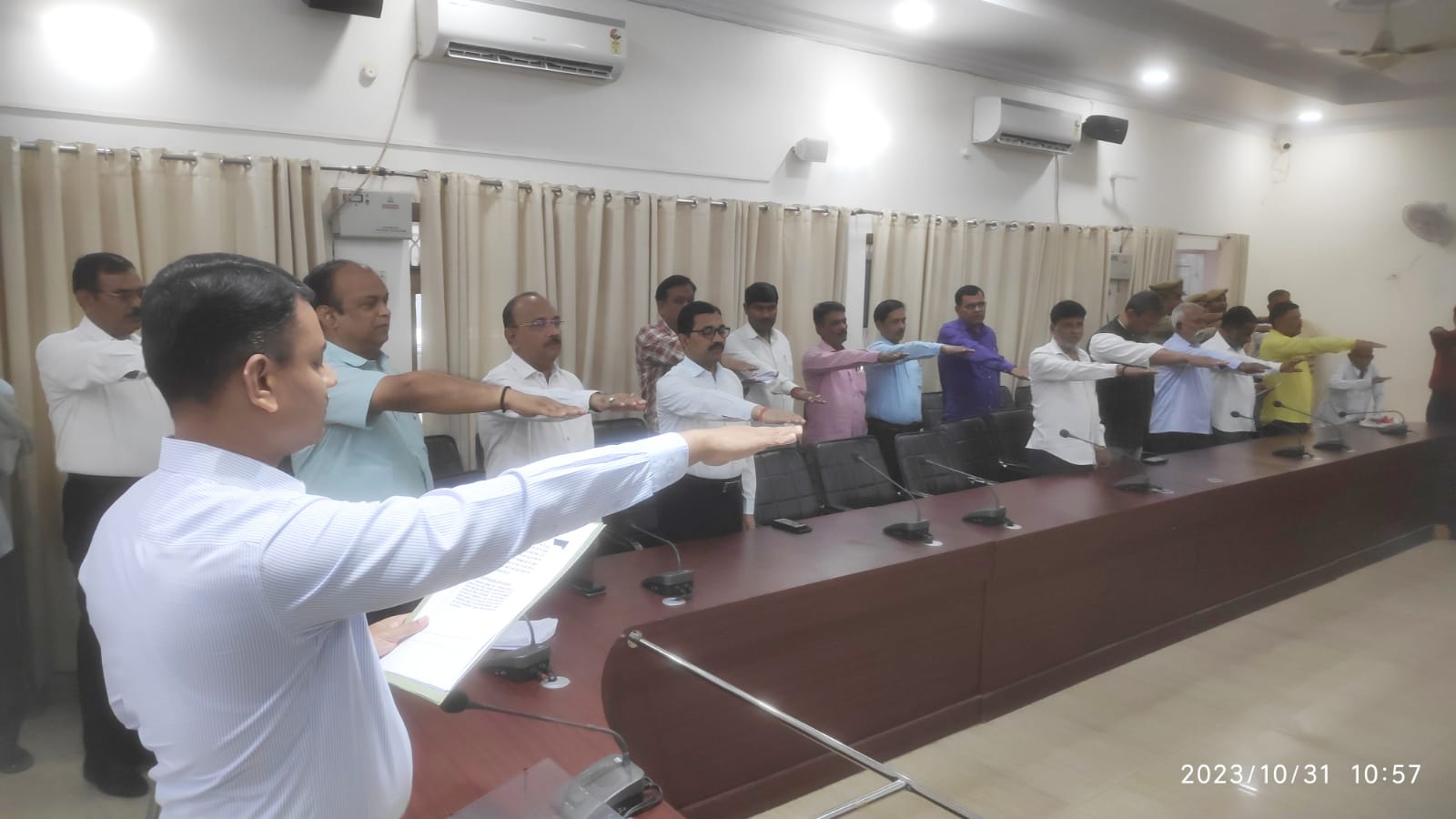 कचहरी कलेक्ट्रेट स्थित जिला राइफल क्लब सभागार में जिलाधिकारी एस राजलिंगम ने आयोजित कार्यक्रम के अवसर पर उपस्थित सभी अधिकारियों व कर्मचारियों को सत्यनिष्ठा पूर्वक शपथ दिलाई। सभी ने राष्ट्र की एकता, अखंडता और सुरक्षा को समर्पित भाव से सुनिश्चित करने और देश की आंतरिक सुरक्षा हर कीमत पर अक्षुण्ण रखने की शपथ ली।