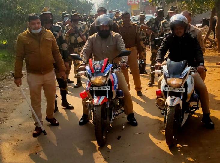 उप्र विधानसभा निर्वाचन, अपराध नियंत्रण, कानून एवं शांति व्यवस्था के मद्देनजर वरिष्ठ पुलिस अधीक्षक बबलू कुमार के निर्देश पर पुलिस व अर्द्धसैनिक बलों ने रविवार को जिले में भगतपुर, सोनकपुर, मूंढापांडे, कटघर, भोजपुर आदि थाना क्षेत्रों में पैदल गश्त किया। इस दौरान प्रशासनिक अधिकारी, पुलिस सर्किल अधिकारी आदि रहे। जिले के सभी थाना क्षेत्रों में थानाध्यक्ष व प्रभारियों के साथ पुलिसकर्मियों ने भी पैदल भ्रमण कर शांति व्यवस्था बनाए रखने का संदेश दिया।