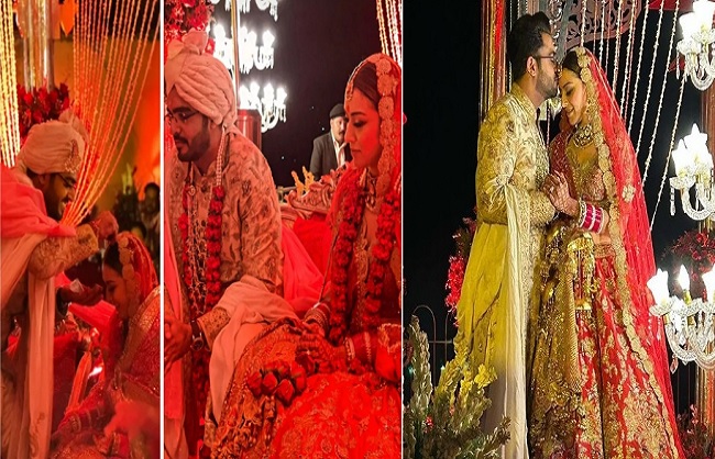 जयपु(हि.स.)। बॉलीवुड एक्ट्रेस हंसिका मोटवानी रविवार रात अपने बॉयफ्रेंड सोहेल कथूरिया के साथ शादी के बंधन में बंध गईं। दोनों ने एक-दूसरे को ऐतिहासिक मुंडोता फोर्ट में वरमाला पहनाई। हंसिका रेड ब्राइडल लहंगे में तो सोहेल ऑफ व्हाइट शेरवानी पहन कर एक-दूसरेे के हुए। इस दौरान हंसिका और सोहेल की शादी में पहुंचे खास मेहमानों को खाने में राजस्थानी व्यंजन भी परोसे गए। कैर सांगरी, गट्टे की सब्जी के साथ भी बेझड़ की रोटी के साथ चूरमा का गेस्ट ने स्वाद लिया।