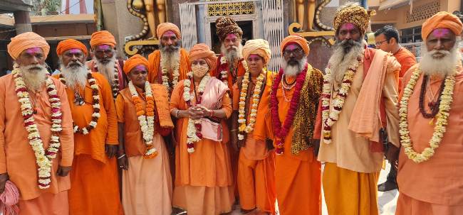 मंदिर की सेवक उपमा पाण्डेय ने बताया कि प्रयागराज के जूना अखाड़े के ये साधु-संत औरैया आदि अलग-अलग स्थानों से यात्रा पर निकले और सब एक साथ एकत्र होकर विभिन्न तीर्थ स्थानों और मंदिरों में दर्शन करते हुए सोमवार को भगवान मनकामेश्वर के दर्शन करने लखनपुरी आए। साधुओं के इस दल में 10 पुरूष और दो महिला संत भी शामिल हैं।