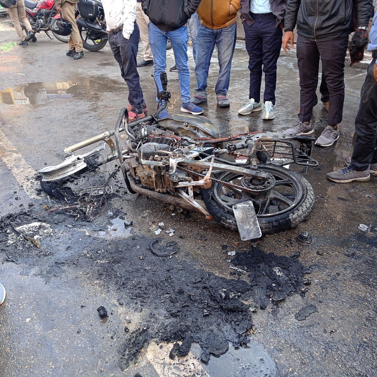 पांडेयपुर लालपुर क्षेत्र के विश्वरंजन किसी काम से सिगरा के लिए घर से निकले थे। सिगरा आईपी माल के सामने उन्होंने अपनी बाइक खड़ी कर बगल में स्थित दुकान पर चाय पीने चले गये। वापस लौट कर उन्होंने बाइक स्टार्ट करने के लिए जैसे ही चाबी लगाई अचानक बाइक में आग लग गई। और देखते ही देखते ही इंजन और आयल टैंक वाला हिस्सा धू-धूकर जलने लगा। अचानक बाइक में आग लगने से मौके पर अफरातफरी मच गई। विश्वरंजन ने भाग कर अपनी जान बचाई और घटना की जानकारी पुलिस को दी।