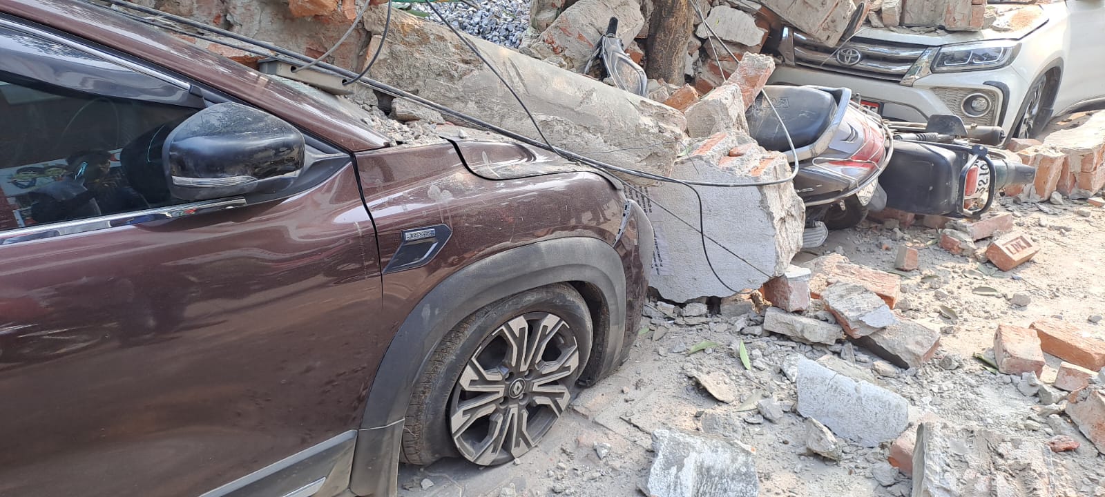 स्टेडियम के पीछे लोग प्रतिदिन की भांति अपना दो पहिया—चार पहिया वाहन खड़ाकर मार्निग वॉक के लिए चले गये। सुबह घने कोहरे और ठंड के चलते मार्ग पर कोई आवागमन भी नही था। इसी दौरान स्टेडियम के पीछे की दीवार अचानक गिर गई। हादसे में मलबे में दबकर दो कार,10 स्कूटी और मोटर साइकिल क्षतिग्रस्त हो गये।
