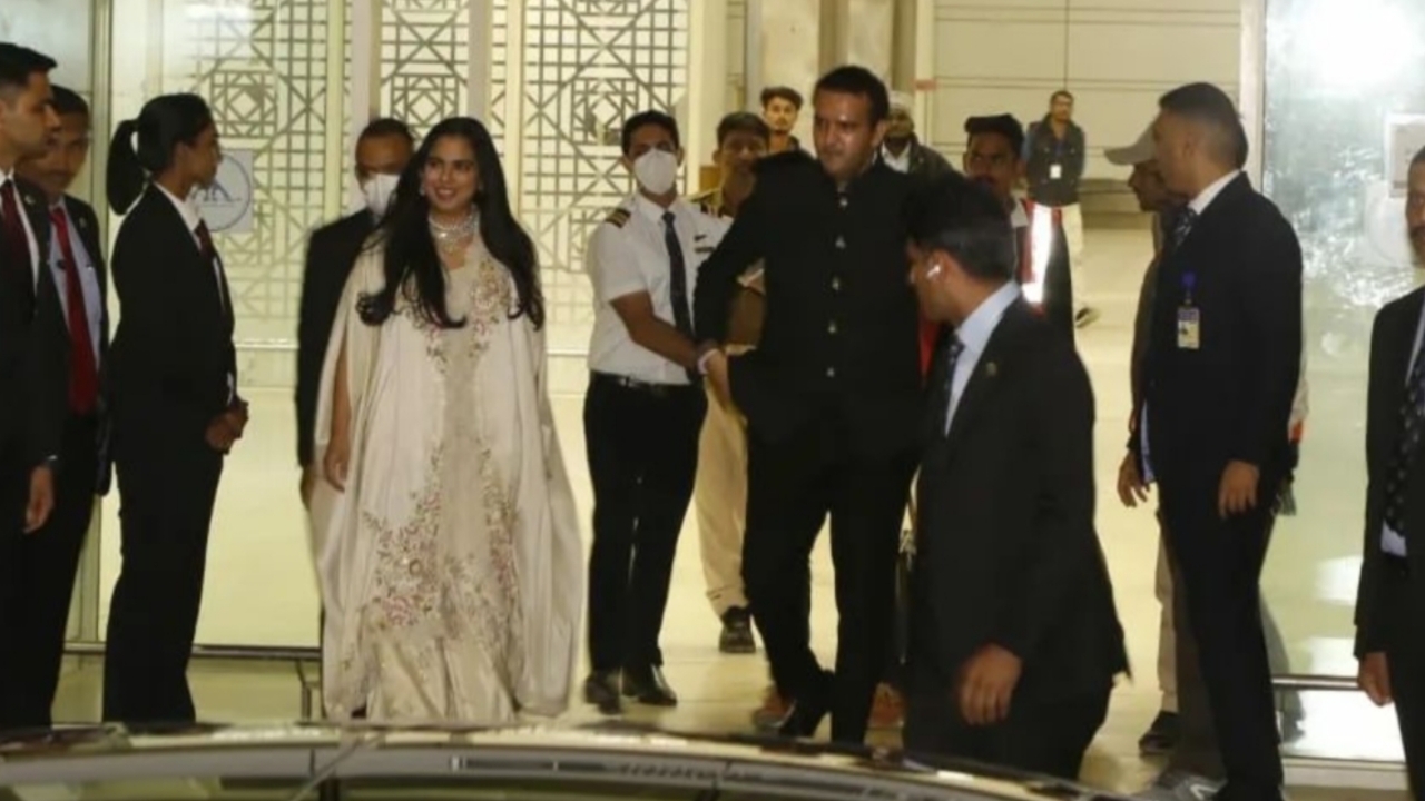 अपनी बचपन की दोस्त कियारा आडवाणी की शादी में शामिल होने के लिए ईशा अंबानी पति आनंद पीरामल के साथ जैसलमेर सूर्यगढ़ पैलेस में पहुंचीं।