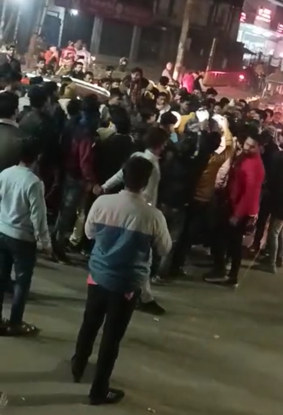 – घटनास्थल पर इकट्ठा हुई भीड़ ने सिपाही को दौड़ाकर पकड़ा, कार में जमकर की तोड़फोड़