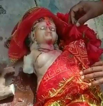 खैरा गांव निवासी दशरथ यादव ने गांव में शायर माता का मंदिर बनवाया है। मंदिर में संगमरमर की सायर माता की मूर्ति स्थापित है। आरोप है कि शनिवार की सुबह गांव के ही एक व्यक्ति ने मंदिर पर पहुंच कर सायर माता की मूर्ति को पटक दिया जिससे मूर्ति का दाहिना हाथ टूट गया। जानकारी होते ही लोग आक्रोशित हो गए। आरोपित अपने ऊपर सायरमाता की सवारी होने का ड्राॅमा करता रहा। पुलिस की गिरफ्त में आते ही आरोपित का ड्राॅमा बंद हुआ। पुलिस हिरासत में लिया गया व्यक्ति ने कहा कि वह प्रतिदिन माता की सेवा करता था लेकिन आज उसने ऐसा क्यों किया, उसे पता नहीं है। वह अपने किए हुए कार्य पर पछतावा भी कर रहा है। बहरहाल गांव में इस प्रकरण को लेकर तनाव था लेकिन दूसरी मूर्ति वाराणसी से आने की बात पर लोग शांत हुए। थानाध्यक्ष जिगना विजय कुमार सरोज ने बताया कि घटना की जांच की जा रही है। यदि तहरीर मिलती है तो वैधानिक कार्रवाई की जायेगी। गांव में शांति व्यवस्था कायम है। आज ही दूसरी मूर्ति स्थापित हो जाएगी।