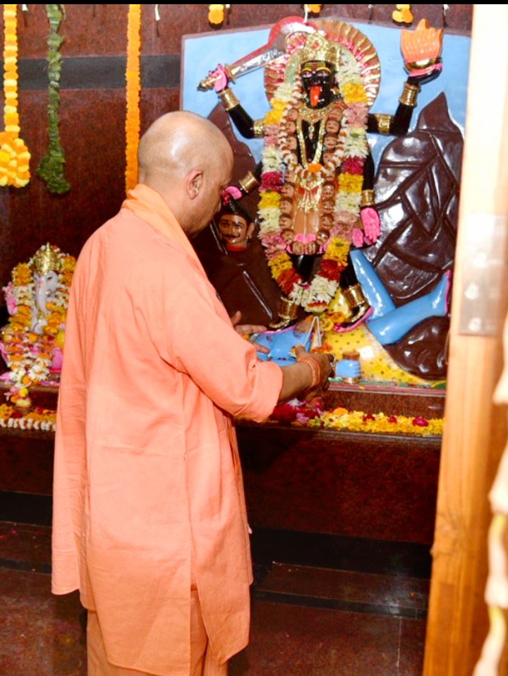 गोरखपुर(हि.स.)। मुख्यमंत्री एवं गोरक्षपीठाधीश्वर योगी आदित्यनाथ ने गुरुवार सुबह गोरखनाथ मंदिर परिसर में नवनिर्मित श्रीकाली माता मंदिर में मां काली, गणेश एवं भैरव की प्राण प्रतिष्ठा की। अनुष्ठान के बाद बड़ी संख्या में लोगों ने भंडारे में प्रसाद ग्रहण किया।