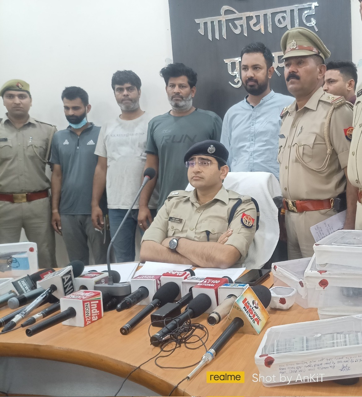पुलिस अधीक्षक नगर (प्रथम) निपुण अग्रवाल ने बताया कि पुलिस ने मुखबिर की सूचना पर शुक्रवार को नया बस अड्डा शहीद स्थल मेट्रो स्टेशन के पास से जेवर गौतमबुद्धनगर निवासी नागेंद्र और नागेश बिल्लोरी, शास्त्री नगर मेरठ निवासी आकाश त्यागी, निस्तौली टीला मोड़ निवासी राहुल जाटव तथा नितेश डागर को गिरफ्तार किया है। उन्होंने बताया कि नागेश कुख्यात गैंग सुंदर भाटी गैंग का शार्प शूटर है और वर्तमान में सक्रिय बदमाश है। वह फरीदाबाद में कोर्ट के बाहर हुई एक हत्याकांड में भी शामिल रहा है। उन्होंने बताया कि दूसरा आरोपी आकाश त्यागी हथियारों का सप्लायर है जबकि बाकी दो इनके साथी हैं जो अपराधों में लिप्त रहते हैं । उन्होंने बताया कि बदमाशों के कब्जे से जो हथियार बरामद हुए हैं वह इन्होंने मेरठ निवासी रईस मुल्ला व विनोद मुखिया के जरिए प्राप्त किए थे। उन्होंने कहा कि बदमाशों की गिरफ्तारी के बाद निश्चित तौर पर अपराधों पर अंकुश लगेगा। उन्होंने बताया कि गाजियाबाद में यह चारों बदमाश किसी बड़े अपराध करने की फिराक में घूम रहे थे।