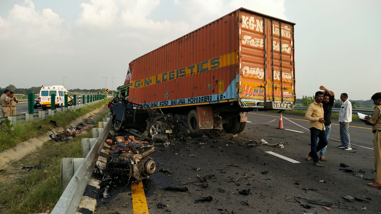 हलियापुर थाना क्षेत्र के किमी 83.750 बीएम डब्ल्यू कार पर कंटेनर चढ़ गया। इस कारण कार में सवार चार लोगों की मौके पर ही मौत हो गयी। पुलिस व यूपीडा की टीम ने राहत और बचाव कार्य शुरू कर दिया है। बता दें कि बीते गुरुवार को भारी बरसात के बाद किमी 83 पर पांच फीट गहरा और 15 फीट चौड़ा सड़क पर गड्ढा हो गया था। इसमें एक कार फंस गई थी।