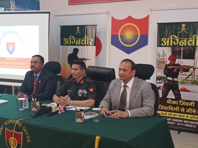 कर्नल नरेंद्र प्रसाद सेमल्टी, निदेशक, सेना भर्ती कार्यालय रायपुर ने गुरूवार को मीडिया को जानकारी दी। इस दौरान साथ में ग्रुप कैप्टन समीर गंगाखेड़कर, प्रवक्ता रक्षा मंत्रालय और सुनिक कुमार तिवारी, कार्यालय प्रमुख, पीआईबी रायपुर भी मौजूद थे। कर्नल ने बताया कि ऑनलाइन रजिस्ट्रेशन 16 फरवरी से 15 मार्च तक भारतीय सेना की वेबसाइट ‘ज्वाइनइंडियनआर्मी.एनआईसी.इन’ पर खुला रहेगा। छत्तीसगढ़ राज्य में रायपुर भिलाई-दुर्ग और बिलासपुर में ऑनलाइन सी.ई.ई. आयोजित की जाएगी। उम्मीदवार के पास पांच परीक्षा स्थानों के चयन करने का विकल्प होगा और उनको उन विकल्पों में से परीक्षा स्थान दिया जाएगा। रजिस्ट्रेशन में परीक्षा शुल्क के हिस्से के रूप में 500 रू. के शुल्क का भुगतान भी शामिल है। जिसमें से 50 प्रतिशत सेना द्वारा वहन किया जाएगा और शेष उम्मीदवारों को स्वयं भुगतान करना होगा, जब ऑनलाइन रजिस्ट्रेशन करेंगे।
