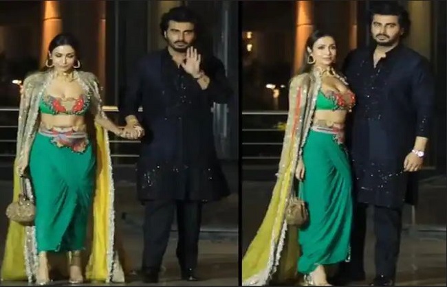 हाल ही में सोनम कपूर ने दीवाली पार्टी का आयोजन किया, जिमें मलाइका और अर्जुन ने एक-दूसरे का हाथ पकड़े एंट्री की और सबका ध्यान अपनी ओर खींच लिया। इस मौके पर दोनों ट्रेडिशनल आउटफिट में काफी सुंदर लग रहे थे। इस दौरान अर्जुन कपूर ब्लैक आउटफिट में नजर आए, जिसमें वह हैंडसम लग रहे थे। उन्होंने ब्लैक कुर्ता पायजामा कैरी किया था और हाथ में एक घड़ी थी। वहीं मलाइका ग्रीन कलर के आउटफिट में दिखीं। मलाइका की ड्रेस इंडो-वेस्टर्न थी। एक्ट्रेस ने डीप नेक ब्लाउज के साथ ग्रीन कलर की स्लिट स्कर्ट पहनी हुई थी। साथ में एक श्रग भी कैरी किया था। दोनों को यूं साथ देख सोशल मीडिया यूजर्स कपल की जमकर तारीफ कर रहे हैं।