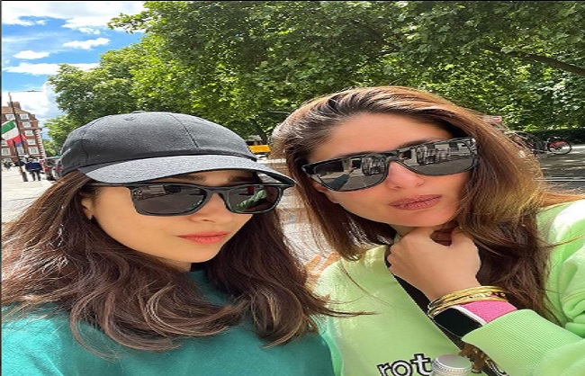 बॉलीवुड की फेमस सिस्टर्स जोड़ी में से एक कपूर सिस्टर्स करिश्मा कपूर और करीना कपूर की एक तस्वीर सोशल मीडिया पर छाई हुई है। इस तस्वीर को करिश्मा कपूर ने अपने आधिकारिक इंस्टाग्राम पर फैंस के साथ साझा किया है। तस्वीर में दोनों बहनें बहुत खूबसूरत लग रही हैं। करीना ने नियॉन कलर का टॉप पहना है और करिश्मा ने ग्रीन रंग के टॉप के साथ कैप लगाई है। दोनों ने आंखों पर काला चश्मा भी चढ़ा रखा है।