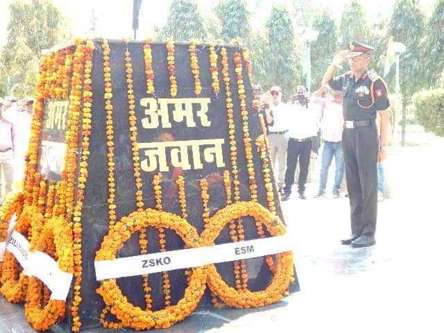 हरदोई (हि.स.)। नगर के सोलजर बोर्ड चौराहा से हटाए गए अमर जवान स्मारक को शहीद स्मारक के पास स्थापित कर दिया गया था। मंगलवार को अमर जवान स्मारक स्थल पर मुख्य अतिथि सिख लाइव इन्फैंटी रेजीमेंट कामाडेड ब्रिगेडियर चन्द्रशेखर अग्रवाल ने अमर जवानों की याद में पुष्प चक्र अर्पित कर सलामी ली।