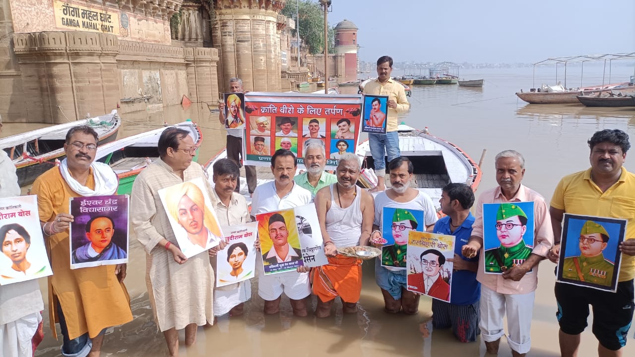 पितृपक्ष में सामाजिक संस्था प्रणाम वंदे मातरम समिति के सदस्यों ने अस्सी घाट पर देश के स्वतंत्रता संग्राम में अपने प्राणों की आहुति देने अनेक क्रांति वीरों चंद्रशेखर आजाद, भगत सिंह,राजगुरु, सुखदेव, सावरकर,नेताजी सुभाष चन्द्र बोस, खुदीराम बोस, सूर्यसेन जैसे अनेक ज्ञात अज्ञात क्रांति वीरों के लिए पिण्डदान, तर्पण पं. प्रकाश पांडेय के नेतृत्व में वैदिक ब्राम्हणों के मंत्रोच्चार के बीच किया। विधिवत पूजा कर मां गंगा और महादेव से उन आत्माओं की शान्ति की प्रार्थना कर भारत में सुख, शांति, समृद्धि की भी की।