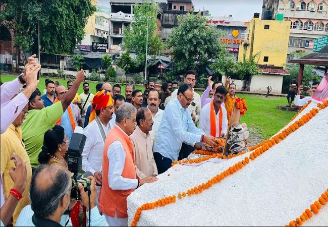 लखनऊ (हि.स.)। शिकागो की धर्मसंसद में स्वामी विवेकानंद द्वारा हिंदुत्व एवं भारतीय दर्शन पर दिये गये प्रथम भाषण की स्मृति में अमीनाबाद स्थित झण्डेवाला पार्क में सोमवार को उपमुख्यमंत्री ब्रजेश पाठक, वन मंत्री अरुण सक्सेना व कार्यक्रम के आयोजक पूर्व नेता विधान परिषद विन्ध्यवासिनी कुमार सहित अनेक गणमान्य लोगों ने स्वामी विवेकानंद की प्रतिमा पर पुष्प अर्पित किया।
