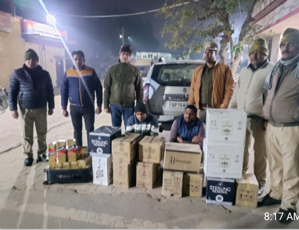 जिला आबकारी अधिकारी राकेश कुमार सिंह ने बताया कि डासना टोल प्लाजा पर रोड चेकिंग के दौरान देर रात्रि में एक सिल्वर रंग की रेनाँल्ट डस्टर कार से जाते हुए बाबूराम निवासी-केसरपुर, जनपद-बरेली व लोटन सिंह निवासी-143, कचौली, जनपद-बरेली, उत्तर प्रदेश को मैकडवेल 1 ब्रांड की 36 बोतल , रॉयल स्टैग ब्रांड की 24 बोतल ,हंड्रेड पाइपर ब्रांड की 24 बोतल, स्टरलिंग रिज़र्व ब्रांड की 24 बोतल , हॉक्सन ब्रांड की 24 बोतल,चार्ली एप्पल ग्रीन ब्रांड की 12 बोतल, फौजी ब्रांड की 24 बोतल, ( प्रत्येक बोतल की धारिता 750 एमएल) रॉयल स्टैग ब्रांड की 06 बोतल( प्रत्येक बोतल की धारिता 2000 एमएल ) कुल 174 बोतल बरामद की। उन्होंने बताया कि सभी हरियाणा राज्य में बिक्री हेतु अनुमन्य थी।