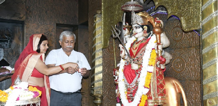 बलरामपुर। प्रदेश के अपर मुख्य सचिव (गृह) अवनीश अवस्थी रविवार को बलरामपुर जिले के तुलसीपुर में स्थित शक्तिपीठ देवीपाटन पहुंचकर मां के दरबार में हाजिरी लगाई और पूजन अर्चन किया। जानकारी के अनुसार, अवस्थी ने बलरामपुर में वरिष्ठ प्रशासनिक व पुलिस अधिकारियों के साथ कानून व्यवस्था की स्थिति की समीक्षा की और तत्पश्चात तुलसीपुर के लिए प्रस्थान कर गए। अपर मुख्य सचिव सीधे देवीपाटन मंदिर पहुंचे। उनके साथ उनकी पत्नी प्रसिद्ध लोक गायिका श्रीमती मालिनी अवस्थी भी रहीं। दोनों ने माता रानी के दर्शन के बाद मंदिर के गौशाला में जाकर कामधेनु गाय की पूजा की। इसके पश्चात पीठाधीश्वर योगी मिथिलेश नाथ से आशीर्वाद प्राप्त किया। मंदिर में ही दोपहर का प्रसाद ग्रहण करने के उपरान्त राजधानी के लिए रवाना हो गए। उनके आगमन से पूर्व स्थानीय पुलिस प्रशासन चौकन्ना रहा। जाने के बाद राहत की सांस ली।