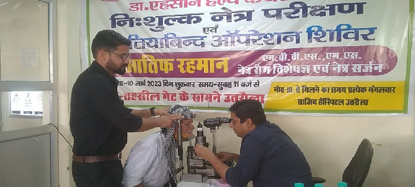 उतरौला, बलरामपुर। स्थानीय तहसील के सामने स्थित साजिदा हॉस्पिटल में शुक्रवार को निःशुल्क नेत्र परीक्षण एवं मोतियाबिंद ऑपरेशन शिविर का आयोजन किया गया। नेत्र सर्जन डॉक्टर आतिफ रहमान द्वारा लगभग 110 नेत्र रोगियों का मुफ्त परीक्षण व उपचार दवा वितरित किया गया। साजिदा हॉस्पिटल के प्रबंधक डॉक्टर एहसान खान ने कहा कि आज के इस निशुल्क नेत्र परीक्षण एवं मोतियाबिंद ऑपरेशन शिविर में लगभग 110 नेत्र मरीजों का मुफ्त परीक्षण व उपचार कर दवा दिया गया है। शिविर में चिन्हित मोतियाबिंद के मरीजों का निशुल्क ऑपरेशन अल रहमान हॉस्पिटल बलरामपुर में डॉक्टर आतिफ रहमान द्वारा किया जाएगा। मोतियाबिंद वाले मरीजों को उतरौला से भेजने व वापस लाने के लिए साजिदा हॉस्पिटल की तरफ से निशुल्क साधन की भी व्यवस्था की गई है। डॉक्टर एहसान खान ने कहा कि क्षेत्र के लोगों को अपनी आंखों के इलाज के लिए दूरदराज के शहरों में जाने ज़रुरत नहीं है। प्रत्येक मंगलवार को साजिदा हॉस्पिटल पर नेत्र सर्जन डॉक्टर आतिफ रहमान अपनी चिकित्सीय सेवा दे रहे हैं। अत्याधुनिक कंप्यूटराइज्ड मशीनों द्वारा जांच, जर्मनी विधि द्वारा बिना टांके का मोतियाबिंद का ऑपरेशन, व लेंस प्रत्यारोपण किया जा रहा है। समलबाई का उपचार व ऑपरेशन। डायबीटिक रेटिनोपैथी एवं रेटिना की अन्य बीमारियों की जांच एवं उपचार, नासूर एवं नाखूना का ऑपरेशन। पलकों की प्लास्टिक सर्जरी, बच्चों के नेत्र रोगों का उपचार, लेंसोमीटर द्वारा शीशों की जांच व आंखों के किसी भी बीमारी का इलाज एवं ऑपरेशन यहां हो सकेगा। डॉक्टर अत्ताउल्लाह खान, डॉक्टर वारिस अली, नेत्र परीक्षण अधिकारी आशीष कुमार गुप्ता, डॉक्टर ओपीटी बलराम सिंह, मसूद आलम ने निशुल्क नेत्र परीक्षण एवं मोतियाबिंद ऑपरेशन शिविर में सहयोग प्रदान किया।
