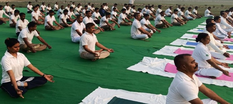 पुलिस लाइन परेड ग्राउंड मे एएसपी ने कराया योगाभ्यास