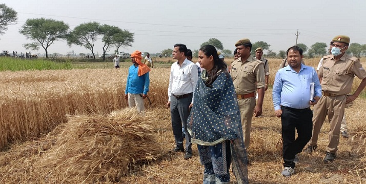 बलरामपुर। जिलाधिकारी श्रीमती श्रुति द्वारा विकास खंड बलरामपुर के ग्राम गनवरिया पहुंचकर गेहूं की फसल की क्राप कटिंग का निरीक्षण किया गया। क्रॉप कटिंग प्रयोगों के आधार पर जिले में फसलों की औसत उपज एवं उत्पादन के आंकड़े तैयार किए जाते हैं। जिलाधिकारी द्वारा संबंधित अधिकारियों को क्रॉप कटिंग के आंकड़ों का सटीक आकलन किए जाने का निर्देश दिया गया जिससे कि जनपद में गेहूं की फसल का औसत उत्पादन एवं उपज के सही आंकड़े तैयार किए जा सके। मौके पर कराए गए क्रॉप कटिंग में प्रति हेक्टेयर 39.259 कुंटल का औसत उत्पादन प्राप्त हुआ। इस अवसर पर जिला कृषि अधिकारी आरपी राणा, तहसीलदार बलरामपुर अन्य संबंधित अधिकारी/कर्मचारी गण उपस्थित रहे।