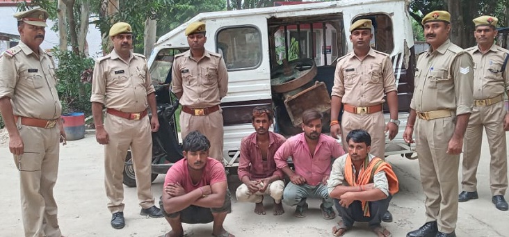 गोंडा। जिले के छपिया थाने की पुलिस ने चार अभियुक्तों अशोक वर्मा पुत्र राम प्रसाद वर्मा व दिनेश वर्मा पुत्र बलिकरन निवासीगण ग्राम ककरहिया, अरविन्द यादव पुत्र रामनयन निवासी ग्राम परसहिया मवई तथा लाल बाबू पुत्र रामसेवक भट्ट निवासी ग्राम अगयामाफी थाना छपिया को गिरफ्तार कर उनके कब्जे से 24 घंटे पूर्व चोरी किया गया एक पम्पिंग सेट बरामद किया। इन अभियुक्तों ने मंगलवार को नागेन्द्र कुमार पुत्र राम नरायण पाण्डेय के पम्पिंग सेट को उठा ले गए थे। यह जानकारी देते हुए पुलिस अधीक्षक आकाश तोमर ने बताया कि स्थानीय थाने पर इस सम्बंध में भादवि की धारा 379, 411 के तहत अभियोग दर्ज कराया गया था।