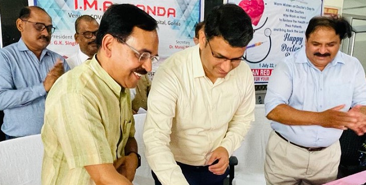 गोंडा। जिला अस्पताल के कोविड हॉस्पिटल में डॉक्टर्स डे के अवसर पर आयोजित कार्यक्रम में जिलाधिकारी डॉ. उज्ज्वल कुमार ने सभी डॉक्टर को डॉक्टर्स डे की शुभकामनाएं दी। उन्होंने वहां पर उपस्थित वरिष्ठ डॉक्टरों को साल देकर सम्मानित भी किया। इसके साथ ही सभी डॉक्टरों को अपने संबोधन में डाक्टर्स डे के संबंध में जानकारी भी दी। इस अवसर पर अपर मुख्य चिकित्सा अधिकारी डॉक्टर एपी सिंह, डॉ. जीके सिंह, डॉक्टर आलोक अग्रवाल, डॉ ओएन पाण्डेय, रेडक्रॉस सोसाइटी के पदाधिकारी सहित अनेक डॉक्टर उपस्थित रहे।