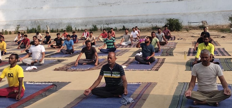 गोंडा। उप्र राज्य विधिक सेवा प्राधिकरण के निर्देशानुसार एवं प्रभारी जनपद न्यायाधीश श्रीमती मीता कुमारी के आदेशानुसार तथा सप्तम अपर जिला जज डॉ दीनानाथ एवं सचिव जिला विधिक सेवा प्राधिकरण कृष्ण प्रताप सिंह की उपस्थिति में अन्तर्राष्ट्रीय योग दिवस के अवसर पर जिला कारागार में योगाभ्यास कार्यक्रम आयोजित किया गया। इस मौके पर मुख्य न्यायिक मजिस्ट्रेट एवं वरिष्ठ अधीक्षक कारागार समेत सभी कर्मचारी एवं बंदी उपस्थित रहे। जनपद न्यायालय परिसर में भी योगाभ्यास कार्यक्रम का आयोजन किया गया।
