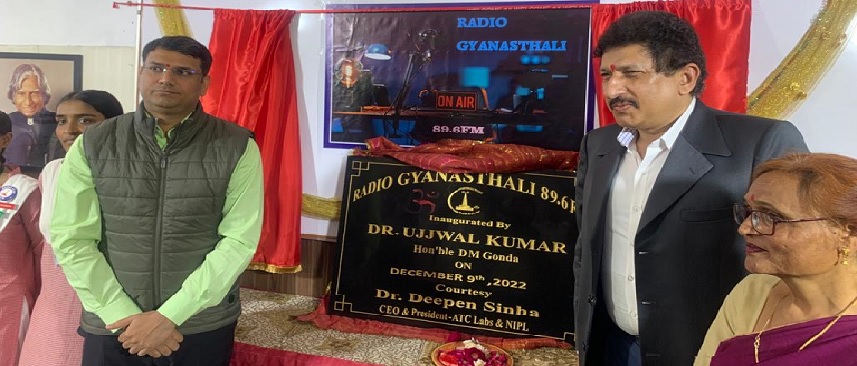 गोंडा। सरस्वती देवी नारी ज्ञानस्थली पीजी कालेज में ज्ञानस्थली 89.6 एफएम के उद्घाटन जिलाधिकारी डा. उज्जवल कुमार ने शिलापट्ट का अनावरण करके एवं रेडियो स्टेशन के मुख्य द्वार का फीता काटकर किया। इस मौके पर महाविद्यालय की छात्राओं ने गीत के श्लोक प्रस्तुत किए। संगीत विभाग की शिक्षिका डा. मनीषा सक्सेना, श्रीमती किरन पाण्डेय एवं श्रीमती गीता श्रीवास्तव के निर्देशन में छात्राओं ने समस्त अतिथियों एवं आगन्तुकों के लिए स्वागत गीत प्रस्तुत किया। कार्यक्रम का मुख्य आकर्षण ‘ज्ञानस्थली 89.6 एफएम प्रोग्राम’ रहा जिसका निर्देशन योगा विभाग की शिक्षिका समता धनकानी ने किया। इसके अन्तर्गत बीए प्रथम वर्ष की छात्राओं ने योगा व लोकगीत एवं एमए की छात्राओं ने तराना पर नृत्य प्रस्तुत किया। इसके पश्चात महाविद्यालय के सचिव तथा रेडियो के संस्थापक डा. दीपेन सिन्हा ने एफएम की लोेकप्रियता, उपयोगिता एवं विशेषताओं के बारे में विस्तार से अपने विचार प्रस्तुत किये। उन्होंने एफएम पर लाइव उद्बोधन में गोण्डा वासियों को ज्ञानस्थली रेडियो शुरू होने पर शुभकामनाएं दीं। महाविद्यालय की प्राचार्या डा. आरती श्रीवास्तव ने इसे ‘गोण्डा शहर की धड़कन’ बताते हुये इसकी आवश्यकता पर प्रकाश डाला।