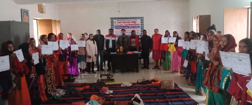 हलधरमऊ, गोंडा। राष्ट्रीय कृषि एवं ग्रामीण विकास बैंक नाबार्ड की सूक्ष्म उद्यम विकास कार्यक्रम एम.ई.डी.पी योजना के अंतर्गत एवं एजुकेशनल टेक्निकल इंस्टीट्यूट बाराबंकी के तत्वाधान में पंद्रह दिवसीय डिजाइनर ब्लाउज प्रशिक्षण कार्यक्रम का समापन ग्राम पंचायत छिटनापुर में संपन्न हुआ। समापन समारोह को संबोधित करते हुए जिला विकास प्रबंधक नाबार्ड शोएब अहमद ने समूह की 30 प्रशिक्षित महिलाओं को प्रशिक्षण प्रमाण पत्र वितरित किए हुए कहा कि ग्रामीण क्षेत्र में समूह की महिलाओं को व्यवसायिक प्रशिक्षण में प्रशिक्षित होना अत्यंत अनिवार्य है। प्रशिक्षित महिलाएं ही देश और अपने परिवार की प्रगति में भागीदार बन सकती हैं। नाबार्ड समूह की महिलाओं को हर संभव सहायता प्रदान करेगा। इंस्टिट्यूट के डायरेक्टर मोहम्मद हारुन सिद्दीकी ने समारोह को संबोधित करते हुए कहा कि सभी महिलाओं को मार्केटिंग लिंकेज से जोड़ने का कार्य किया जाएगा तथा समय-समय पर बैठक करके शासन द्वारा संचालित योजनाओं की जानकारी भी प्रदान की जाएगी। श्री सिद्दीकी ने कहा कि प्रशिक्षण अवधि में नाश्ता लंच प्रदान किया गया है और सभी लाभार्थियों के खाते में 750 रूपये वजीफा भेज दिया गया है। समापन समारोह में प्रधान प्रतिनिधि बबलू शुक्ला, क्लस्टर विकास अधिकारी संदीप कुमार, मोहम्मद शादाब, सुश्री शालिनी सिंह, मार्केटिंग एक्सपर्ट रूप चंद, सुश्री शिवानी मिश्रा उपस्थित रहे।