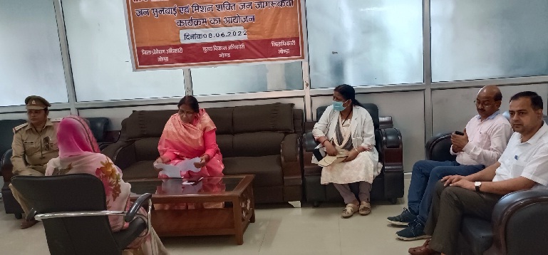गोंडा। मिशन शक्ति 4.0 अभियान के तहत उप्र राज्य महिला आयोग की सदस्य श्रीमती सुमन सिंह द्वारा झंझरी ब्लाक में चौपाल/संवाद कार्यक्रम किया गया। उन्होंने सर्किट हाउस में महिलाओं से सम्बन्धित जनसुनवाई कार्यक्रम में समस्याओं को सुना तथा उनके समुचित निवारण के निर्देश दिए। यह जानकारी देते हुए जिला प्रोवेशन अधिकारी संतोष कुमार सोनी ने बताया कि श्रीमती सिंह ने विकास खंड के झंझरी ब्लाक के मीटिंग हाल में स्वयं सहायता समूहों की महिलाओं, महिला ग्राम प्रधानों, आंगनबाड़ी कार्यकत्रियों व निराश्रित महिला पेंशन की लाभार्थियों के साथ संवाद किया। श्रीमती सिंह ने कार्यक्रम को संबोधित करते हुए कहा कि हर क्षेत्र में महिलाएं आगे बढ़ी हैं। फिर भी ग्रामीण क्षेत्रों में महिलाओं की दशा का सुधारने की अभी आवश्यकता है, जिसमें आप सभी के प्रयास से सकारात्मक बदलाव लाया जा सकता है। उन्होंने संबोधित करते हुए कहा कि सभी विभाग समन्वय बनाते हुए अधिक से अधिक पात्र महिलाओं को जनकल्याणकारी योजनाओं का लाभ दिलायें। साथ ही योजनाओं के बारे में लोगों को जागरुक करते रहें। कार्यक्रम में महिला ग्राम प्रधानों ने अपने गांव में कराये गये विशेष कार्यों की उपलब्धियों के बारे में सभी को बताया। इसके बाद उन्होने सर्किट हाउस में जनसुनवाई कार्यक्रम में महिलाओं की समस्याओं को सुना। कार्यक्रम में 5 शिकायतें प्राप्त हुई, जिस पर तत्काल कार्यवाही के लिए सम्बन्धित अधिकारी को निर्देशित किया। इस दौरान सिटी मजिस्ट्रेट अर्पित गुप्ता, जिला समाज कल्याण अधिकारी राजेश चौधरी, जिला विद्यालय निरीक्षक राकेश कुमार, जिला महिला चिकित्सालय की डा. सुषमा सिंह, वन स्टाप सेंटर की चौकी प्रभारी मंजू यादव, संरक्षण अधिकारी नेहा श्रीवास्तव, सीडीपीओ धर्मेन्द्र कुमार व अभिषेक दूबे, विधि सह परिवीक्षा अधिकारी जयप्रकाश यादव, संरक्षण अधिकारी चन्द्रमोहन वर्मा, जिला समन्वयक राजकुमार आर्य, दीपशिखा शुक्ला, चाइल्ड लाइन प्रभारी आशीष मिश्रा, पंकज राव, नीलम सरोज, स्वाती पांडेय, योगेन्द्र कुमार आदि मौजूद रहे। बाद में उन्होंने जिला कारागार में स्थित महिला बैरक का निरीक्षण किया तथा वहां पर महिला बंदियों को मिल रही सुविधाओं के बारे में जानकारी ली तथा हाल चाल जाना। इसके उपरान्त जिला कारागार में शहीद राजेन्द्र नाथ लाहिड़ी की प्रतिमा पर माल्यार्पण किया। इस दौरान जिला कारागार के वरिष्ठ अधीक्षक मौजूद रहे।