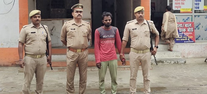 उमरी बेगमगंज, गोंडा। स्थानीय थाना क्षेत्र के अन्तर्गत सेमरी कला गांव में बीते दिनों हुई एक महिला की हत्या के मामले में पुलिस ने एकतरफा प्यार में पागल सिरफिरे युवक को गिरफ्तार किया है। थानाध्यक्ष मुकेश कुमार पाण्डेय ने बताया कि सेमरी कला के पांडेय पुरवा निवासी राम कुमार की पत्नी उत्तिमा बीते शुक्रवार की सुबह घर से घास काटने निकली थी। दोपहर तक उसके घर न लौटने पर तलाश शुरू की गई तो देर शाम गांव के पास तालाब के किनारे मक्के के खेत में उसका शव बरामद हुआ। पुलिस ने शव का पंचनामा करवाकर पोस्टमार्टम के लिए भेजा। पोस्टमार्टम रिपोर्ट में हत्या किए जाने का खुलासा होने पर स्थानीय थाने पर अज्ञात के खिलाफ हत्या का मुकदमा दर्ज कर पुलिस ने विवेचना शुरू की थी। पुलिस के छानबीन के दौरान पता चला कि सिधौटी निवासी राम लौटन पुत्र गुल्ले उत्तिमा को पसंद करता था और कई दिन से उसका पीछा कर रहा था। घटना के दिन मक्के के खेत में उत्तिमा को अकेला देखकर राम लौटन ने दबोच लिया था। मगर उत्तिमा के विरोध करने और मामले की जानकारी से गांव में बदनामी के डर से उसने हंसिया से गला काटकर हत्या कर दी और मौके से फरार हो गया। पुलिस ने आरोपी को गिरफ्तार कर जेल भेज दिया।
