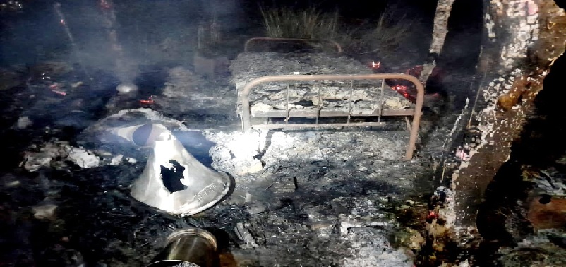गोंडा। इटियाथोक थाना क्षेत्र के गनवरिया पंचायत अंतर्गत गनवरिया व पंडित पुरवा गांव के बीच स्थित दुर्गा माता मंदिर के पुजारी महेश्वरी प्रसाद गोस्वामी का मंगलवार देर शाम को मडहा संदिग्ध परिस्थियों में जलकर राख हो गया। बताया जाता है कि आगजनी के वक्त पुजारी मडहे में मौजूद नहीं थे। घटना में अंदर मौजूद बेड, बिस्तर, हॉर्न समेत अन्य सामान जलकर खाक हो गए। घटना के बाद मौके पर जमा लोगों ने कहा कि किसी के द्वारा यह आग जान बूझकर लगाई गई है। आक्रोशित ग्रामीणों ने घटना की कड़ी निंदा की और मामले में लिप्त लोगों पर कार्रवाई की मांग उठाई। ग्रामीणों ने मामले की जानकारी डायल 112 पुलिस को दी। लोगों की सूचना पर पुलिस ने पहुंचकर जांच पड़ताल शुरू की। घटना की जांच जानकारी होने पर जुटे ग्रामीणों ने जब तक आग को बुझाने का प्रयास किया आग ने विकराल रूप धारण कर अंदर रखे सामान को आगोश में ले लिया। प्रभारी निरीक्षक ने कहा कि मामले की जांच पड़ताल करते हुए आवश्यक कार्रवाई की जा रही है।