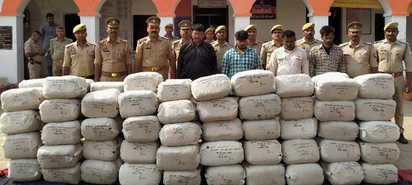 गोंडा। जिला पुलिस ने गुरुवार को अवैध मादक पदार्थ की तस्करी करने वाले गिरोह का खुलासा करते हुए चार अभियुक्तों को गिरफ्तार कर उनके कब्जे से साढ़े पांच कुंतल से अधिक अवैध गाँजा बरामद किया है, जिसकी अनुमानित कीमत 57 लाख रुपए है। अभियुक्तों के पास से 20500 रुपए नकद भी बरामद किए गए हैं। यह जानकारी देते हुए पुलिस अधीक्षक आकाश तोमर ने आज यहां बताया कि थाना कोतवाली नगर व स्पेशल आपरेशन ग्रुप (एसओजी) की संयुक्त टीम ने आज तड़के गश्त के दौरान शफीक अहमद, अब्दुल खालिक उर्फ बाबा, बृजेश कुमार यादव व मंदीप यादव को गिरफ्तार कर उनके कब्जे से पांच कुंतल 51 किलो 250 ग्राम अवैध गाँजा व 20500 रुपए नकद बरामद किया, जिसकी अनुमानित कीमत 57 लाख है। अभियुक्तों के विरुद्ध थाना कोतवाली नगर में एनडीपीएस एक्ट के तहत अभियोग पंजीकृत कर जेल रवाना किया गया। गिरफ्तार कर्ता टीम में प्रभारी निरीक्षक राकेश कुमार सिंह व एसओजी प्रभारी संतोष कुमार सिंह शामिल रहे।