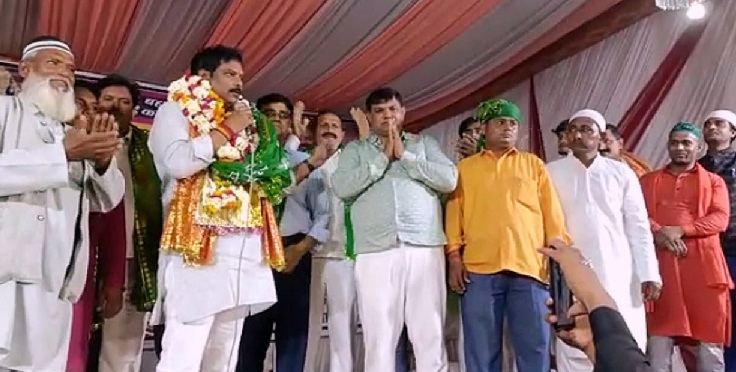 गोण्डा। जिले के धानेपुर थाना क्षेत्र के ग्राम सभा रेतवागाड़ा में हज़रत बाबा फैय्याज़ुल हक़ उर्फ़ खामोश शाह के अढ़तालीसवें सालाना उर्स के अवसर पर आयोजित कार्यक्रम में कव्वाली पेशगी के लिए कानपुर से आये ताहिर चिश्ती व अशलम निज़ामी बरेली शरीफ़ ने अपनी बेहतरीन गायकी से शमां बाँध दिया। इस कार्यक्रम में भाजपा के क्षेत्रीय विधायक विनय कुमार द्विवेदी ने मुख्य अतिथि के रूप में शिरकत की। उर्स में उनका ज़ोरदार स्वागत किया गया। उन्होंने लोगों को उर्से मुक़द्दस की बधाई दी है। हज़रत बाबा फैय्याज़ुल हक़ की स्मृति में आयोजित किये गए उर्से मुक़द्दस के इस कार्यक्रम के मुख्य आयोजक विजयकांत सिंह, ग्राम प्रधान अमितेश सिंह, ज्वाला सिंह, संरक्षक बब्बन खान, कोषाध्यक्ष ज़माल बाबा सहित ग्राम वासी उपस्थित रहे। आपको बता दें की हिन्दू रीति रिवाजों के तहत पुण्य स्मृति पर आयोजित होने वाली श्रद्धांजलि सभा की शक्ल में उर्से मुक़द्दस का आयोजन हर साल किया जाता है, जिसे क्षेत्रीय लोग प्रायोजित करते हैं। हर साल की तरह इस बार भी बेहतरीन तरीके से उर्से मुक़द्दस का यह कार्यक्रम हर्षोल्लास के साथ शांतिपूर्ण ढंग से सम्पन्न किया गया। सुरक्षा ब्यवस्था के लिए थानाध्यक्ष शेषमणि पाण्डेय दलबल के साथ मुस्तैद रहे।