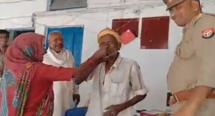 गोण्डा। उप्र पुलिस अपराधियों के खिलाफ सख्त कार्रवाई और कई बार चूक को लेकर चर्चा में रहती है। इस दौरान कई ऐसे काम भी करती है जिससे कि उनकी भूरि-भूरि प्रशंसा होती है। ऐसा ही हुआ है जिले के कटरा बाजार इलाके में, जहां पुलिस ने एक बुजुर्ग दंपती के बीच सुलह करवाई। इस घटना का वीडियो जिले के पुलिस अधीक्षक संतोष कुमार मिश्रा ने ट्विटर पर पोस्ट किया तो वायरल हो गया। शादी के 60 वर्ष बाद आपसी विवाद के चलते अलग रह रहे 75 वर्षीय बुजुर्ग दंपती को थाना प्रभारी सुधीर कुमार सिंह ने मिठाई खिलाकर साथ रहने को राजी किया। 75 वर्षीय बुजुर्ग शिवनाथ निवासी ग्राम लोनियन पुरवा बनंगाव तथा उनकी पत्नी जनका देवी (72) ने बताया कि उनकी शादी को 60 वर्ष हो गये हैं। दोनों का किसी बात को लेकर झगड़ा व कहासुनी हो गई थी। इसलिए काफी दिनों से दोनों अलग-अलग रह रहे थे। थाना प्रभारी सुधीर सिंह ने बताया कि दोनों पक्षों की बातों को सुना गया। दोनों को समझा-बुझाकर एक साथ रहने को राजी किया गया। इसके बाद दोनों ने एक-दूसरे को मिठाई खिलाई और जीवन भर कभी भी अलग न होने का संकल्प लिया।