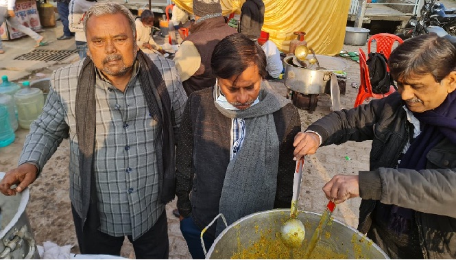 गोण्डा। मकर सक्रांति के पर्व पर शनिवार को स्थानीय आवास विकास कालोनी में नगर के प्रतिष्ठित उद्यमी दीप चन्द्र अग्रवाल द्वारा धूमधाम से भण्डारे का आयोजन किया गया। आसपास के लोगों, राहगीरों व रिक्शा चालकों आदि ने भंडारे का प्रसाद ग्रहण कर आनन्द लिया। भंडारा पूर्वान्ह से शुरू होकर देर शाम तक चलता रहा। आने वाले सभी लोगों को पूड़ी और सब्जी का प्रसाद वितरित किया गया। दिन भर सैकड़ो लोगों ने भण्डारे में प्रसाद ग्रहण किया। आयोजक दीप चन्द्र अग्रवाल ने कहा कि मकर संक्रांति के पर्व पर स्नान, दान का विशेष महत्व है। इसी क्रम में उन्होंने इस भण्डारे का आयोजन किया है। इस मौके पर वरिष्ठ अधिवक्ता व भाजपा नेता केके श्रीवास्तव, प्रतिष्ठित व्यवसायी सुनीत कुमार अग्रवाल आदि मौजूद रहे।