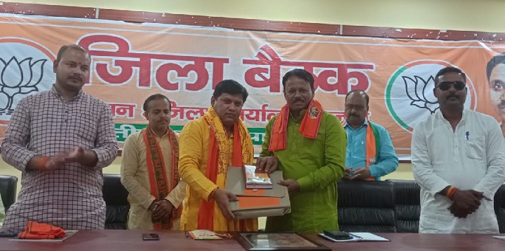 गोंडा। भाजपा किसान मोर्चा की बैठक जिला कार्यालय पर जिलाध्यक्ष भाजपा अमर किशोर कश्यप ‘बमबम’ की अध्यक्षता में सम्पन्न हुई। बैठक में मुख्य अतिथि के रूप में क्षेत्रीय उपाध्यक्ष बृजेश सिंह एवं विशिष्ट अतिथि के रूप में प्रदेश सह मीडिया प्रभारी किसान मोर्चा शुभम् त्रिपाठी उपस्थित रहे। अध्यक्ष और मुख्य अतिथि ने दीन दयाल उपाध्याय एवं श्यामा प्रसाद मुखर्जी के चित्र पर माल्यार्पण कर बैठक आरंभ की। भाजपा किसान मोर्चा के जिला मीडिया प्रभारी शिवांशु मिश्र ने बताया कि बैठक में मुख्य रूप से देश के यशस्वी प्रधानमंत्री नरेन्द्र मोदी के कार्यकाल के आठ वर्ष पूर्ण होने के उपलक्ष्य में भाजपा किसान मोर्चा द्वारा आयोजित होने वाले कार्यक्रमों की रूपरेखा तय की गई। मुख्य अतिथि ने विधानसभा वार पदाधिकारियों को दायित्व सौंपा। बैठक में उपस्थित कार्यकर्ता एवं पदाधिकारीगण भाजपा जिला महामंत्री राकेश तिवारी, हंसराज सिंह पूर्व जिलाध्यक्ष किसान मोर्चा, देव नारायण मिश्रा, धर्म पाल सिंह जिला महामंत्री भाजपा किसान मोर्चा, सचिन वाल्मीकि, पवन सिंह जिला उपाध्यक्ष भाजपा किसान मोर्चा, दुर्गेश गुप्ता, बृजेश तिवारी, बिंदेश्वरी वर्मा, पवन सिंह, श्रीचंद्र तिवारी, सालिक राम, रविन्द्र सिंह, राजेंद्र प्रसाद पांडेय, रवि प्रकाश तिवारी, सुशील कुमार श्रीवास्तव, पंकज कुमार, शुभम यादव, प्रमोद पांडेय, राजकुमार वर्मा आदि उपस्थित रहे।