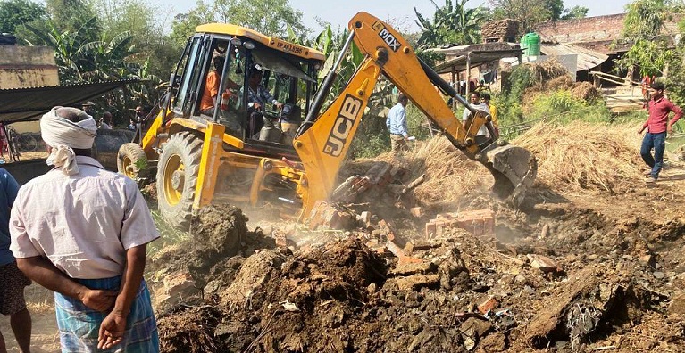 खलिहान की जमीन पर बनी बिल्डिंग को किया गया ध्वस्त
